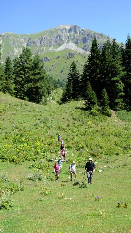 Sabah alacağımız muhteşem kahvaltının ardından yaklaşık 4 saatlik yürüyüşümüze hemen pansiyonumuzun önünden başlıyoruz. Çok az iniş çıkışın olacağı yürüyüşümüze geçide kadar azar azar tırmanarak başlıyoruz. Hemen hemen tüm yürüyüşümüz vadiler içinde geçeceği için ‘yan geçiş’ dediğimiz statüde bir yürüyüş olacak. Cancir Yaylası’nı gördüğümüz sırta geldiğimizde artık inişe geçeceğimizin işaretini almış oluyoruz. Çok dik olmayan bu iniş sonrası yaylayı tam yukarıdan göreceğimiz sırtta varıyoruz. Fotoğrafların ardından araca doğru inişe devam ediyoruz. Eğer şanslı isek yaylacılardan birinin evinde sıcak çay içebiliriz. Öğleden sonra başka bir programımız olduğu için çay için şansımızın iyi gitmesini dileyeceğiz. Sıcak karşılanmanın verdiği mutluluk ile halen yok olmamış nadir yayladan biri olan Cancir Yaylası’ndan aracımıza binerek ayrılıyoruz. Yarım saat sonra Lekoban yaylasındayız. Yemekten sonra yine yarım saatlik yol ile İndastvinda Geçidi’ne çıkıyoruz. Buradan eğer hava açık ise Macahel vadisi ve Batum sahili görülebiliyor. Fotoğraf molasından sonra tekrar araç ile 15 dakika daha yükselerek Naçadirev Gölü’nün altına varmış oluyoruz. Burada gerçekten havanın açık olması için dua edebiliriz. Karçal Dağı’na en yakın olduğumuz yer burası. Beş dakikalık yürüyüş ile göle çıkıyoruz. Cesaretlileri suyun içinde görmek isteriz. Yeteri kadar burada kaldıktan sonra artık dönüşe geçiyoruz. İsteyenler İndatsvinda Geçidi’nden pansiyona kadar 45 dakikalık yürüyüş yapabilirler.